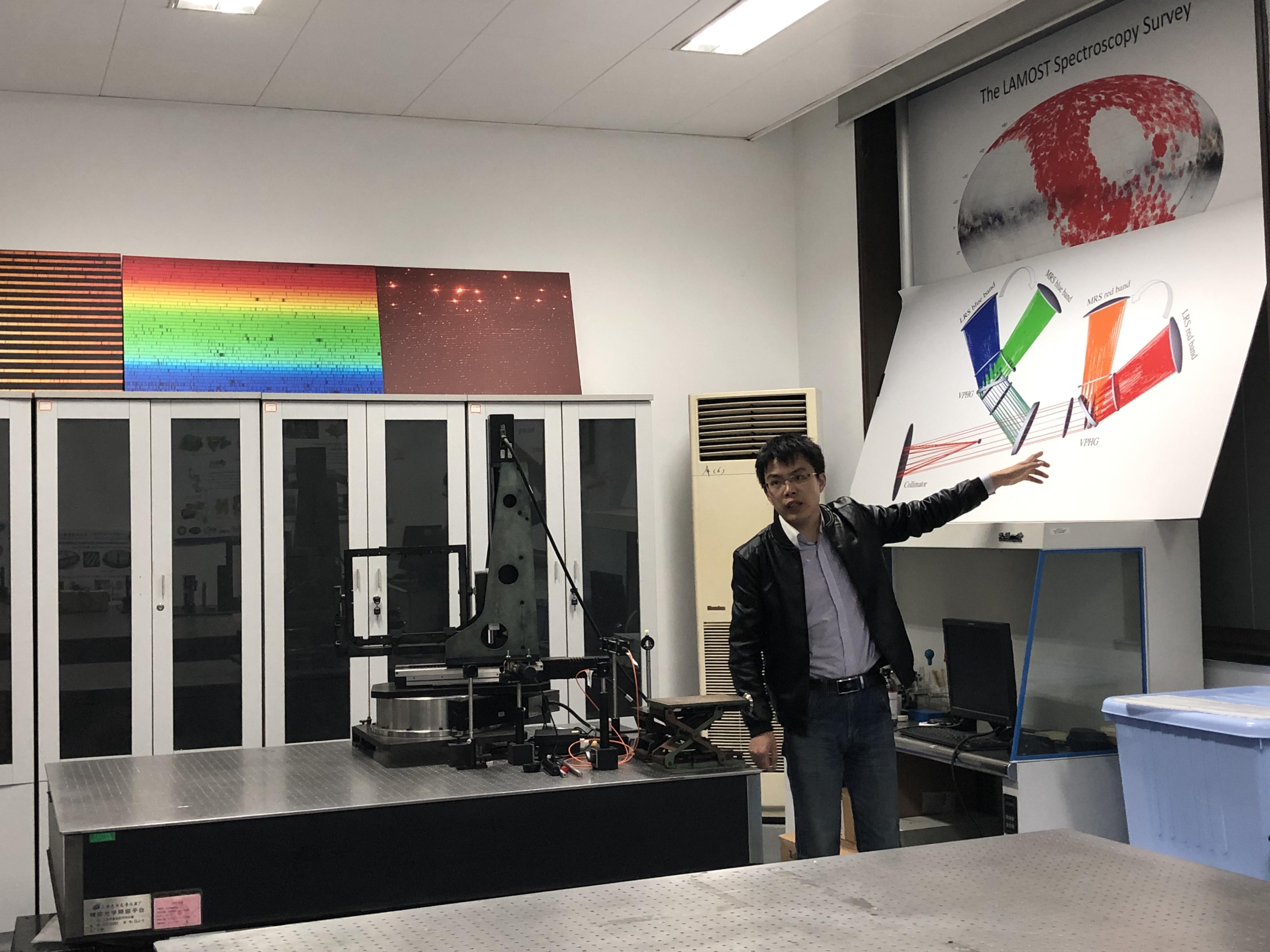 随后大家参观了系外行星探测技术实验室,这里主要开展天文仪器新技术和新概念天文仪器的研究。研究员详细地向我们介绍了在寻找类地行星方面开展的工作与相关进展,并激励大家投身人类这项伟大的事业。