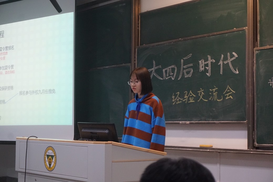 保研的员工代表分别是保研本校的杨述焱和保研上交的刘倩雯。在保研方面,杨述焱详细介绍了保研的一系列流程以及各类条件,还提供了2019届毕业生的保研情况作为参考;刘倩雯介绍了保研外校的一般流程以及需要注意的一些问题,给对外校保研有兴趣的同学带来了很多指导性的建议。