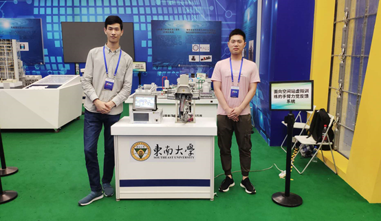 本次展览以全国科技创新五年来取得的重大成就为主线,展示了包括人工智能、医药健康、集成电路、航空航天、等领域科技创新成果、科普展项和互动体验产品,共280余个项目。公司机器人研究所宋爱国老师的项目:“面向空间站虚拟训练的手臂力觉反馈系统“作为国家科技重大专项成果参与展览,参展人员为公司的曾欣与邵斌澄同学。