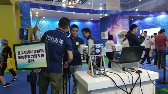 科技展开幕第一天就吸引了大批人员参观,公司的力反馈系统因其良好的体验感和真实的人机交互性深受群众喜爱,展台前一直有人排队等待体验。中国科协、国家科技部和中央军委科技委有关领导都对公司力反馈设备在航天员虚拟训练中的重要意义做出了高度评价。北京多家电视台、网络平台科米直播对公司项目进行了详细报道,通过媒体让更多人知道力反馈设备的工作原理以及应用领域,也让更多人了解太阳成集团tyc,了解​太阳成集团tyc。