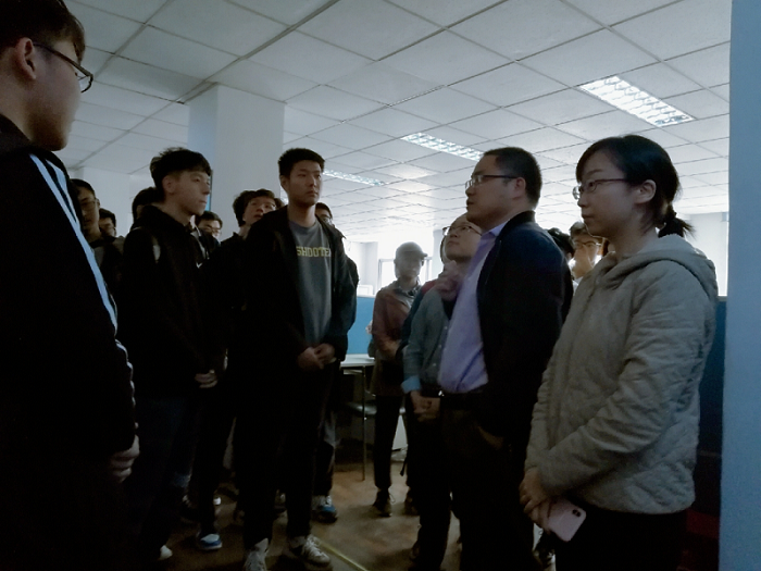 参观的第二站是逸夫科技馆的110室,研究人员为大家详细介绍了三轴转台的实验流程,同时为大家演示了IMU标定实验,与同学们进行交流互动,讨论氛围浓厚。