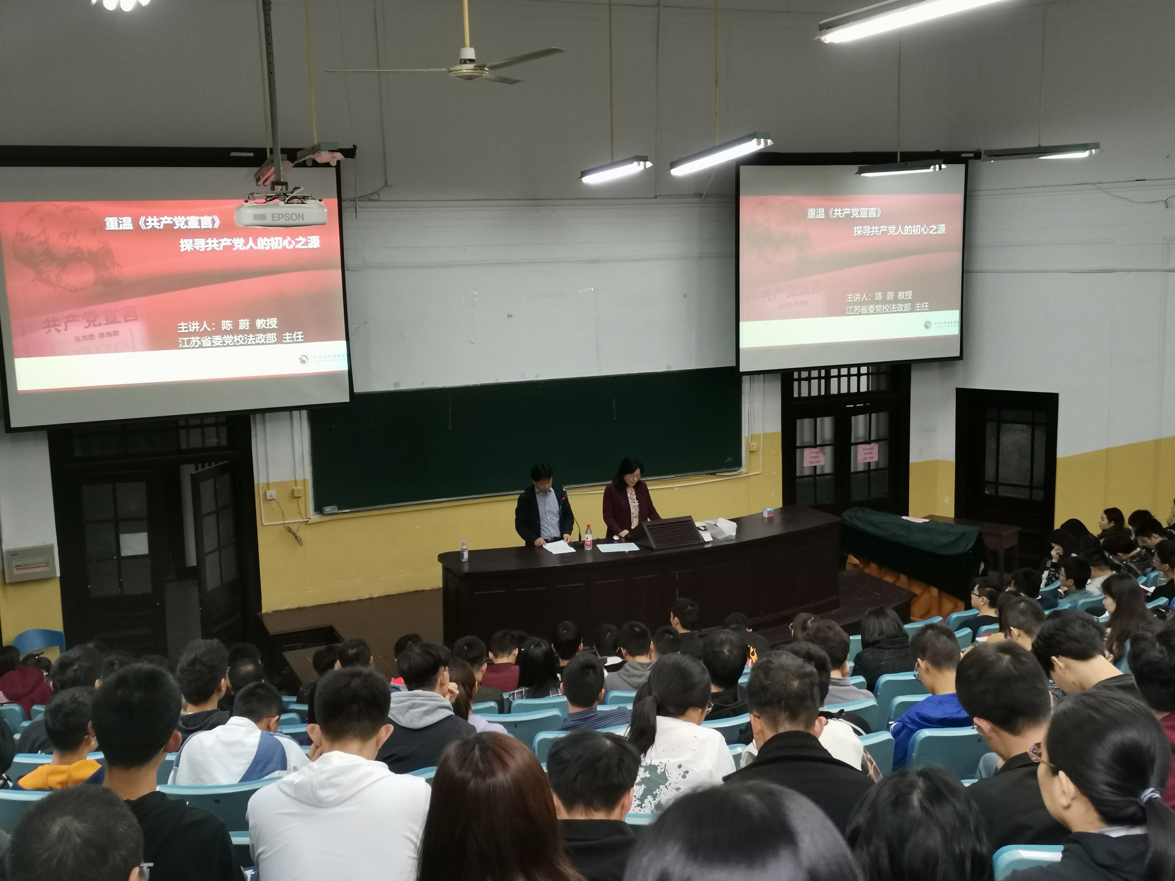 同时,作为“不忘初心 牢记使命”主题教育理论学习的一部分,公司领导班子成员、师生党支部书记及支委也到场聆听了江苏省委党校陈蔚教授题为“重温共产党宣言,探寻共产党人的初心之源”的讲座。在近三个小时的报告中,陈蔚教授围绕《共产党宣言》诞生的时代背景、马克思和恩格斯的共产主义信仰形成之路、《共产党宣言》的主要内容以及今天如何通过重温《共产党宣言》坚定共产主义信仰等方面,对共产党人的初心和使命作了深入浅出的阐述,帮助大家进一步理解和坚定了共产主义的崇高信仰。