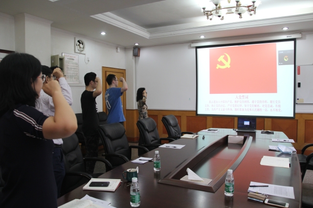 最后,全体参会的党员同志面向党旗宣誓,重温入党誓词。以誓词激励大家在奋斗中释放青春激情,追逐青春理想,努力展现新时代新党员新形象,为实现中华民族伟大复兴的中国梦贡献自己的力量,无愧于共产党员的光荣称号!