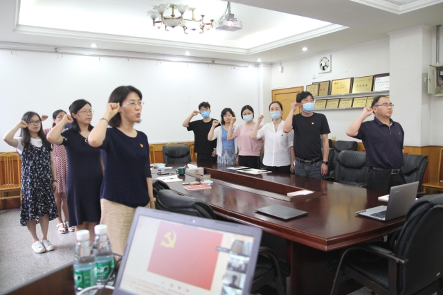 接着,举行了新党员入党宣誓仪式。在公司党委书记王军的带领下,13名新党员右手握拳举过肩头,面对鲜红的党旗,逐句庄严宣誓。现场参会的党员老师也一起重温了入党誓词,铿锵激昂的宣誓声有力地抒发了新老党员们对党忠诚的决心。