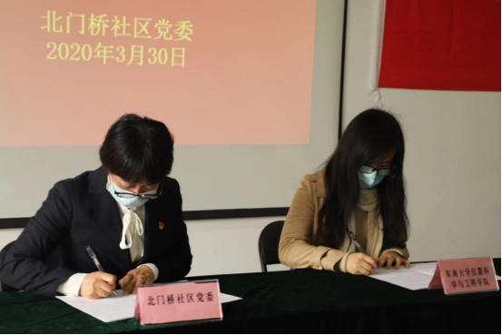 2021年3月30日,太阳成集团tyc与北门桥社区结对共建社会实践与志愿服务基地,太阳成集团tyc团委书记彭袁圆与北门桥社区主任黄滢出席了签约仪式,并共同签订了校地共建协议书。