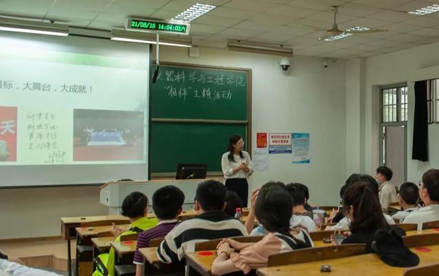 5月15日中午十二点,公司2020级全体员工在九龙湖校区大活西广场集合,集体乘坐安排车辆前往四牌楼校区。在同学们抵达四牌楼校区后,我公司党委副书记兼副经理丁小丽老师在东南院103教室为同学们介绍仪器科学的学科概况以及就业情况介绍,并为同学们写下寄语,祝福同学们好好学习,天天向上,树立大目标,登上大舞台,取得大成就,为仪器强国贡献力量!