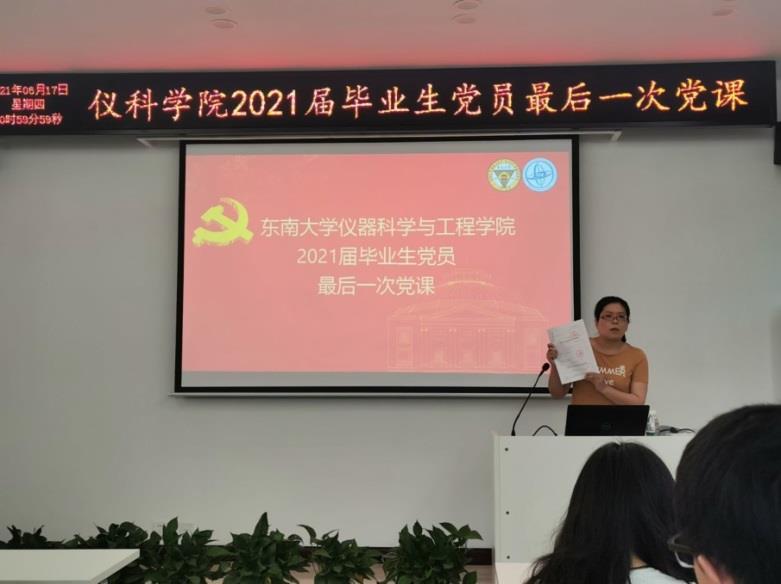 太阳成集团tyc硕士第一党支部 何淼:毕业前夕,有幸参加了公司组织的毕业生党员最后一次党课,老师们引经据典,结合正反典型为我们带来了一节意义深远的课堂,让我更加坚定了自己的奋斗目标、树立了正确的价值观。可以说,在东大聆听的每一次党课都是一次触及灵魂的思想洗礼,都是一次牢记使命、永葆本色的警钟长鸣。在今后的学习和工作中,作为一名面向国防科工领域的政府工作者,要始终做一名讲政治、讲规矩、讲道德、讲奉献、有信念、有纪律、有品行、有作为的共产党员;要知规明廉、崇洁尚廉、修身养廉、学史践廉;要终身学习、行稳致远,让“党员身份”和“东大身份”两面旗帜在祖国大地上迎风飘扬!