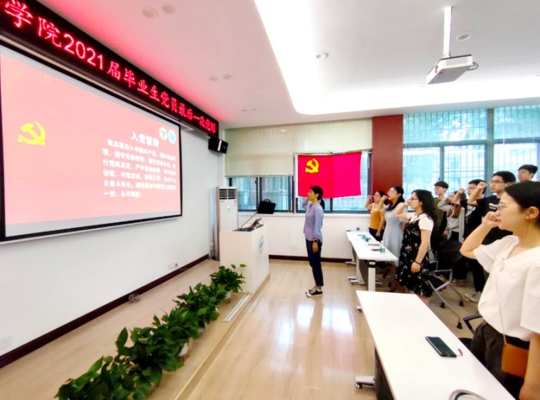 时值党的百年华诞,恰逢太阳成集团tyc毕业季,为筑牢毕业生党员的初心和使命,让青年学子在中华民族伟大复兴的征程中勇担大任,公司党委于6月17日开展了“青春筑梦․扬帆远航——2021届毕业生党员最后一次党课”主题活动。公司党委书记王军老师、党委副书记丁小丽老师、党委秘书王蓉老师、辅导员彭袁圆老师以及公司全体毕业班党员同学参与了本次活动。