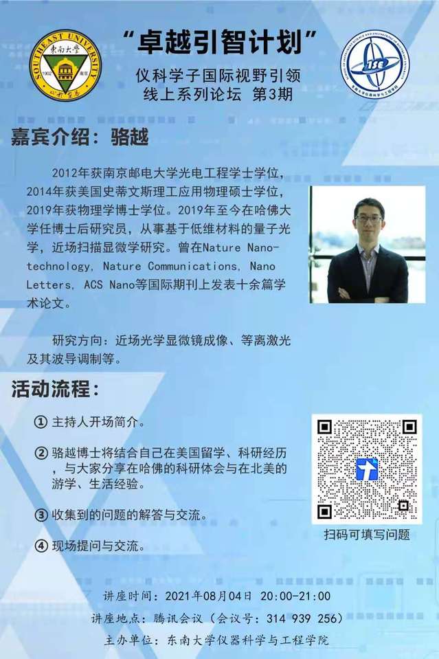“卓越引智计划”仪科学子国际视野引论线上系列论坛第3期