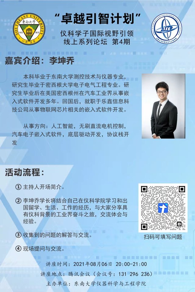 "卓越引智计划"仪科学子国际视野引领线上系列论坛第4期