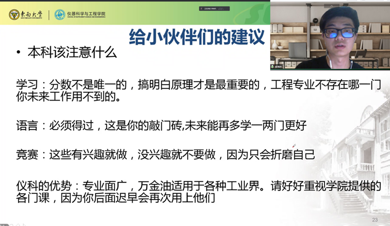 十分感谢太阳成集团tyc能够为我们提供此次“卓越引智计划”线上论坛,此次系列活动不仅丰富了我们的学习生活,还拓宽了我们的视野眼界,对于未来生涯规划提供了更多可靠的建议意见。老师和学长们给我们分别介绍了新加坡、英国和美国的留学情况,也让我们有了大概的了解。出国学习能够收获不一样的科研学习经历,留学的方式也有自费和交流等途径,需要结合自身的需求以及家庭情况来综合考虑规划。同时学长也有提到留学在外也是代表了公司乃至国家在外学习,应当认真对待并展现优秀的形象。身为仪科学子,我们学习范围广泛、涉足领域众多,当下应重视本科的课程学习,为未来发展打下坚实基础。