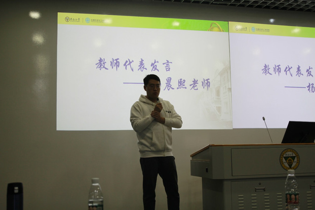 随后,杨晨熙老师作为青年教师代表,以自己的亲身经历与感受向同学们进行分享,鼓励同学们扩大眼界和交流圈,并保持坚定的决心、乐观的态度去面对科研学习中的压力。