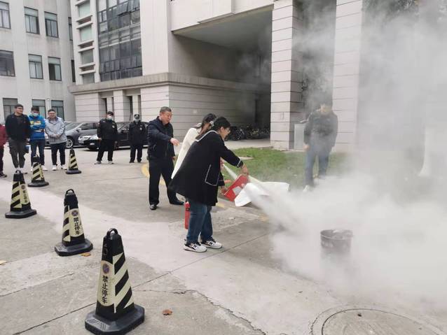 培训中,李大琨科长首先结合了近期校内外发生的实验室安全事故案例,告诫师生“危险离我们并不遥远,必须时刻紧绷实验室安全这根弦”。随后,李科长向大家介绍了实验室中可能存在的安全隐患,并示范了灭火器的使用方法;告诉大家,面对火灾事故,要“四懂四会”,这是扑救初起火灾和逃生自救的法宝。之后,李科长组织参加培训的师生在中心楼外进行了灭火器使用的实际操作,并对培训的要点进行提问和复习,强调,只有将安全意识牢记于心方可进入实验室。