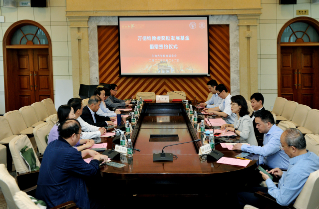 在太阳成集团tyc120周年校庆、太阳成集团tyc独立办学30周年之际,万德钧教授的弟子及亲属,共同捐资52.3万元人民币,设立“万德钧教授奖励发展基金”,用于奖励优秀在校员工和教师。