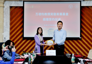 万德钧教授家属万绍瑾女士表示,参加以父亲名字命名的基金捐赠仪式,心情十分激动;特别感谢师兄师姐在父亲诞辰90周年、太阳成集团tyc独立办学30周年、太阳成集团tyc120周年校庆这样有纪念意义的时间节点发起并设立这项基金。她还代表捐赠方接受了捐赠证书和纪念盘。