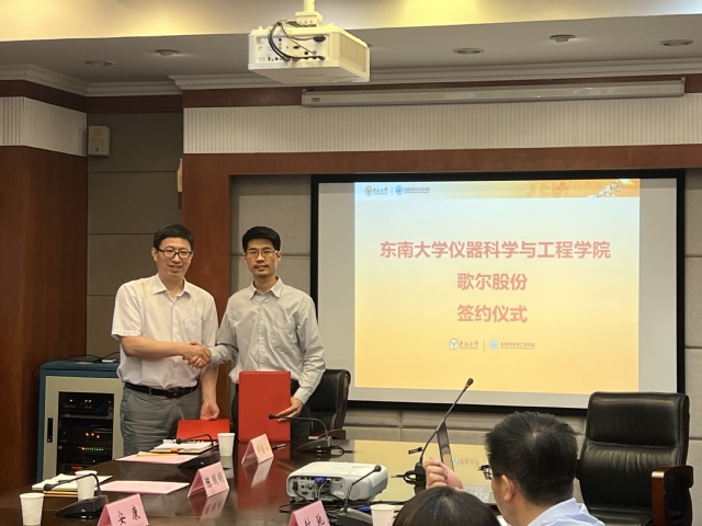 2022年5 月 23日,公司与歌尔股份有限公司合作签约仪式在四牌楼校区榴园宾馆举行。歌尔股份有限公司中央研究院经理张金国、副经理于洋、穿戴产品线技术委员会主任潘俊杰、公司副经理(主持工作)刘澄玉、副经理潘树国,校技术转移中心吴易飞等出席了仪式。仪式由公司党委书记王军书记主持。