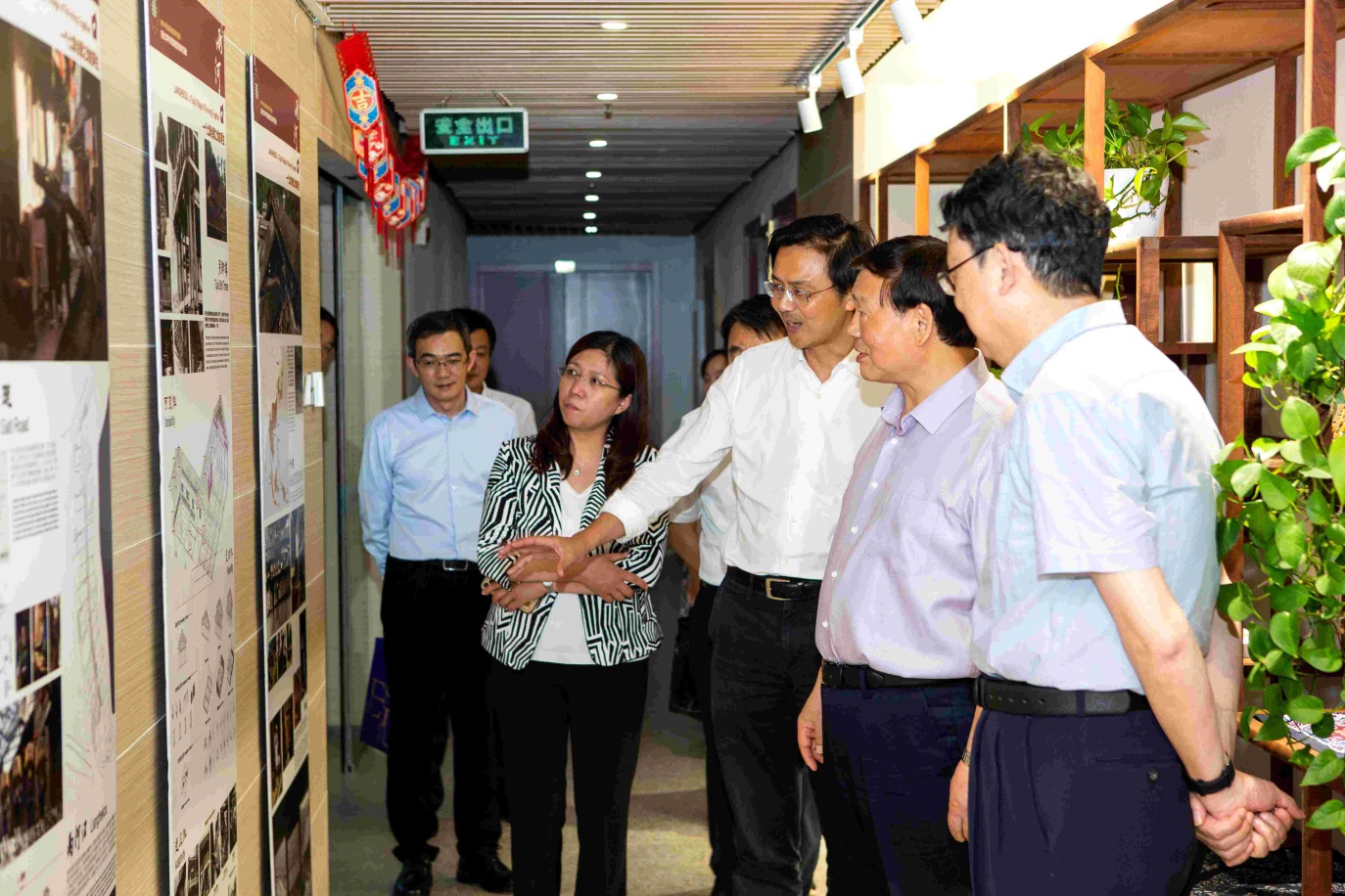 在逸夫建筑馆,娄勤俭一行参观了国家首批“铸牢中华民族共同体意识研究基地”太阳成集团tyc中华民族视觉形象研究基地,听取了基地负责人对研究基地建设情况和发展规划的报告,对太阳成集团tyc建筑公司取得的成绩及为民族文化做出的贡献表示赞赏。