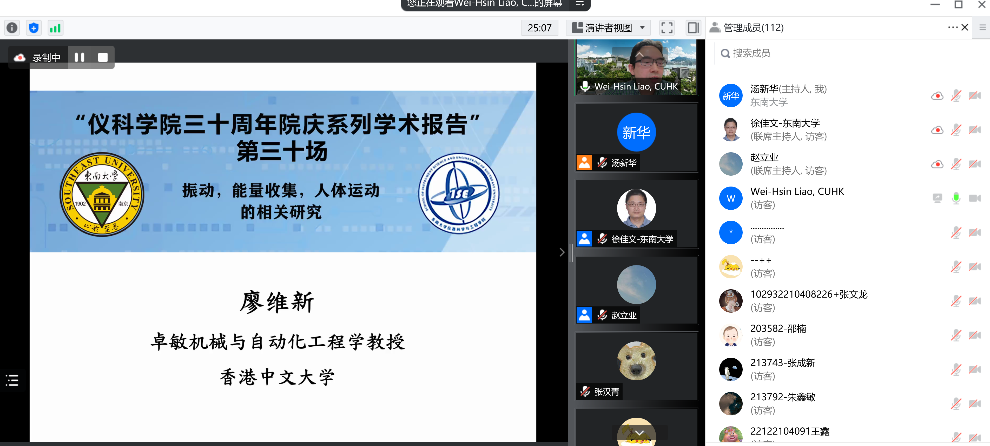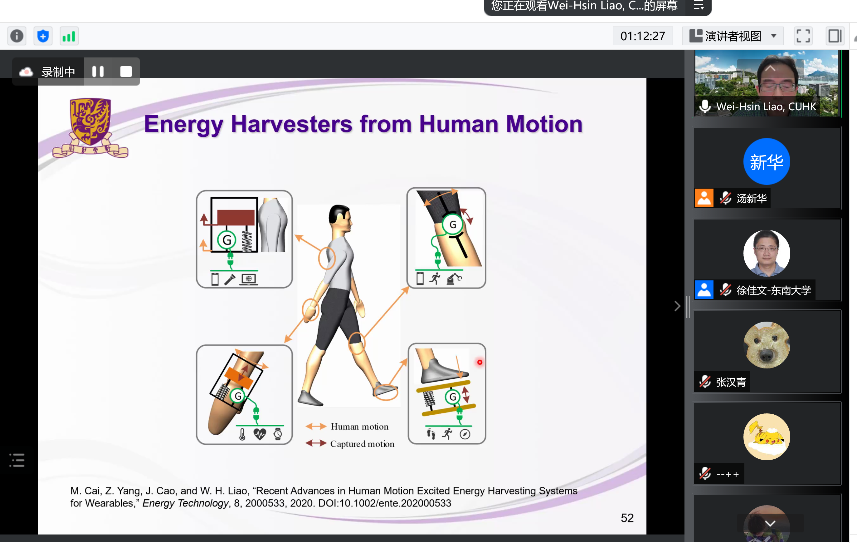 2022年6月22日晚20:00,太阳成集团tyc举办了三十周年院庆系列学术报告第三十场次,本次邀请到了香港中文大学卓敏机械与自动化工程公司廖维新教授,分享其在振动,能量收集,人体运动方向的相关研究成果。
