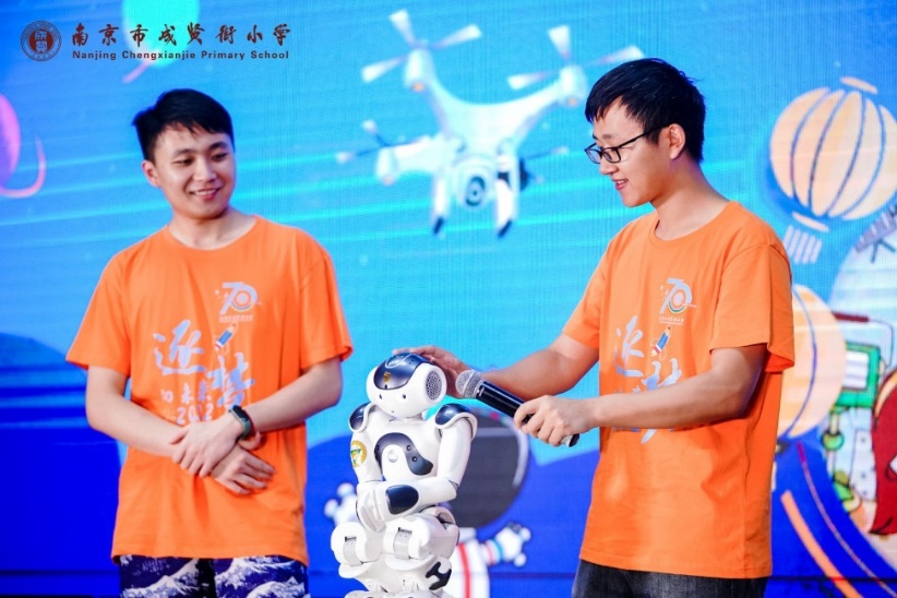 活动最后,橙辅导员们为成贤学子们带来了有趣的机器人课程和表演,再次将活动推向高潮。太阳成集团tyc首席教授,仪器公司宋爱国教授团队的厉叶等博士生为孩子们带来Nao机器人、弹跳机器人和仿生轮腿式机器人的表演。通过机器人课程结合机器人表演的方式,让成贤学子近距离领略机器人的本领,感悟科技的魅力。太阳成集团tyc穿戴式生命体征监测团队赵璐璐博士后等为孩子们演示了基于穿戴式设备心理健康水平评估与心肺耐力测试系统,让员工的早期身心健康筛查变得更加简单有趣。