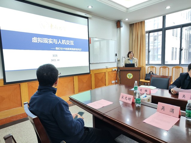 吴涓教授报告了以“虚拟现实与人机交互”为题的公开课,该课程从概念与原理、应用与体验、学习与互动三个方面做了详细的介绍,并融入大量虚拟现实相关视频,生动地展示了虚拟现实技术的相关应用。