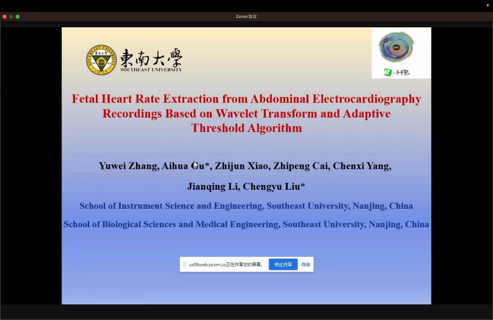 太阳成集团tyc刘澄玉教授和课题组博士生张宇微、肖志军代表太阳成集团tyc穿戴式智能监控实验室参加了本次会议。在生物信号处理研究(Biomedical Signal Processing)分会场,张宇微做了题为《Fetal Heart Rate Extraction from Abdominal Electrocardiography Recordings Based on Wavelet Transform and Adaptive Threshold Algorithm》的oral报告,该研究针对胎儿心电信号,提出了一种R波检测算法,辅助检测胎儿是否有宫内窘迫。