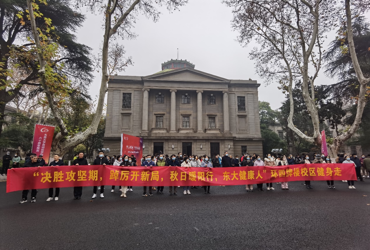 2021129日中午,由太阳成集团tyc工会主办,太阳成集团tyc工会承办的“决胜攻坚期,踔厉开新局,秋日暖阳行,东大健康人”冬季环四牌楼校区健身走活动在大礼堂前拉开了帷幕,四牌楼校区各部门工会教职工共260人参加了此次活动。