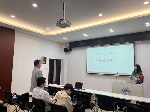 接着,陈超同学介绍了自己在布鲁塞尔自由大学进行博士CSC联培的情况。他着重介绍了三方面问题。一是如何平衡科研与生活的关系,在比利时留学期间深刻感受到“科研就是生活”,需要自己有很强的自律性和主动性,同时也要注意休息和放松;二是如何突破语言障碍,他鼓励大家不要过分害怕语言问题,申请CSC时,如果能够得到外校导师的语言认可材料,就不一定需要雅思托福成绩做支撑;三是申请过程中研究计划书的重要性,研究计划书是展示自己的科研能力和潜力的重要文档,也是与外校导师沟通和合作的基础。他建议,研究计划书要突出自己的特色优势,包括自己的研究背景、成果、目标等,同时要结合外校的专业优势,比如外校的研究方向、资源、设备等,从而构建一个合理的、可行的、有创新性的研究方案,以此让外校导师看到双方的契合度和互补性,从而达到一个“双赢”的局面。