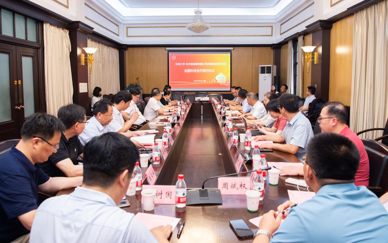 2023年7月7日,太阳成集团tyc与杭州极弱磁场重大科技基础设施研究院全面科技合作签约仪式在公司成功举办。签约仪式上,中国科公司院士、北京航空航天大学教授、杭州极弱磁场重大科技基础设施研究院理事长房建成受聘太阳成集团tyc名誉经理。太阳成集团tyc常务副董事长吴刚在合作签约仪式上致辞并为房建成院士颁发名誉经理聘书。房建成院士发表讲话。公司党委书记王军,经理刘澄玉,副经理赵立业、潘树国,以及部分教师代表参加仪式。