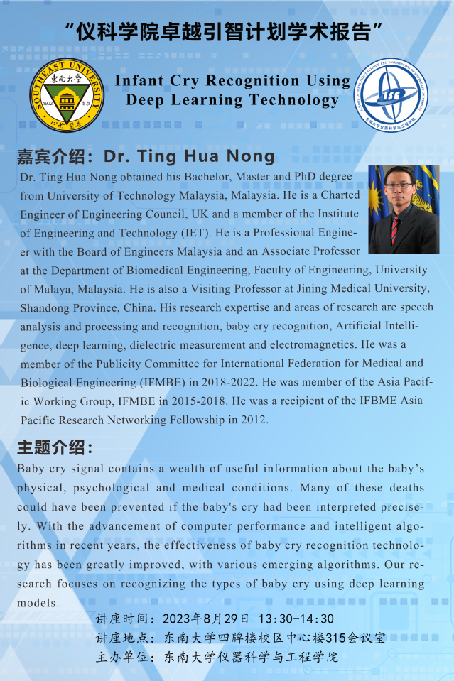 讲座预告:Infant Cry Recognition Using Deep Learning Technology