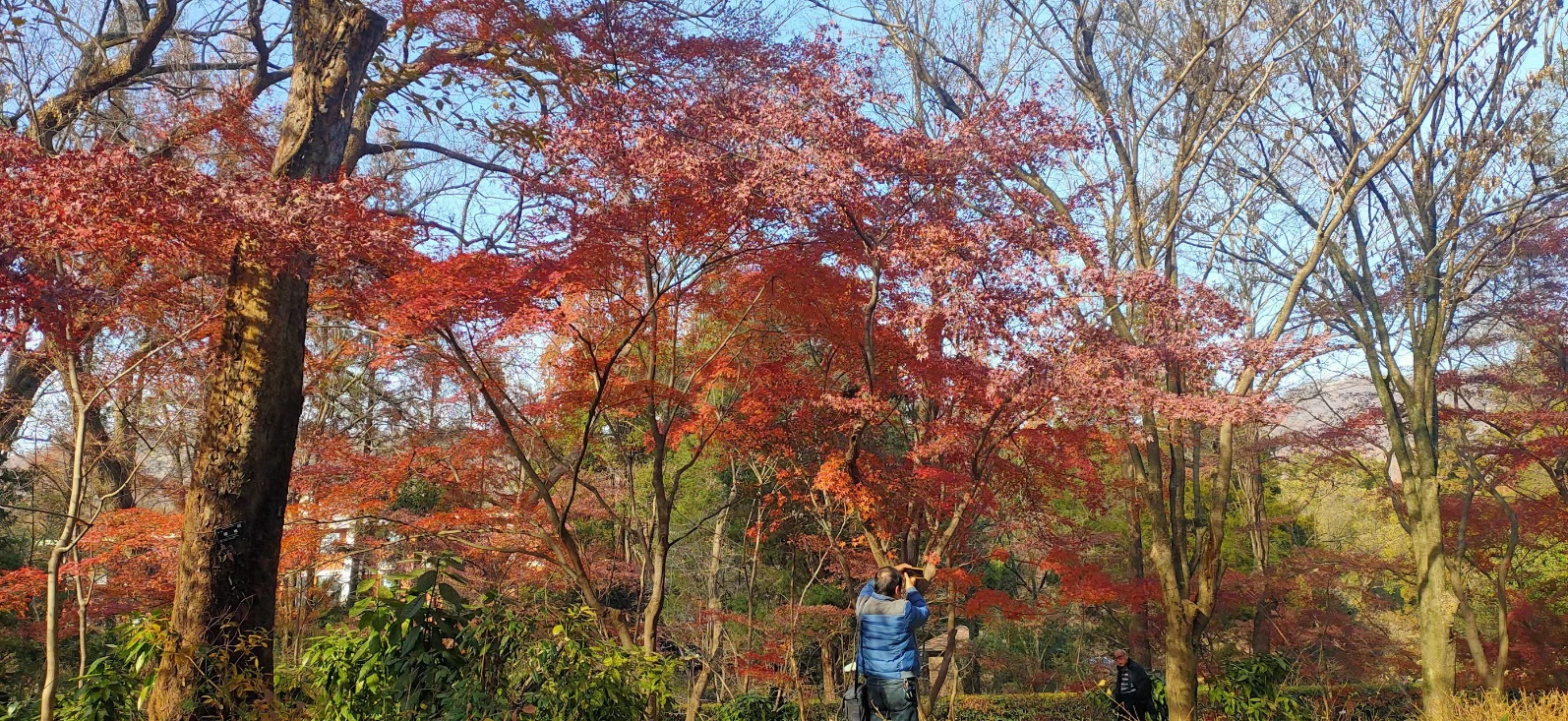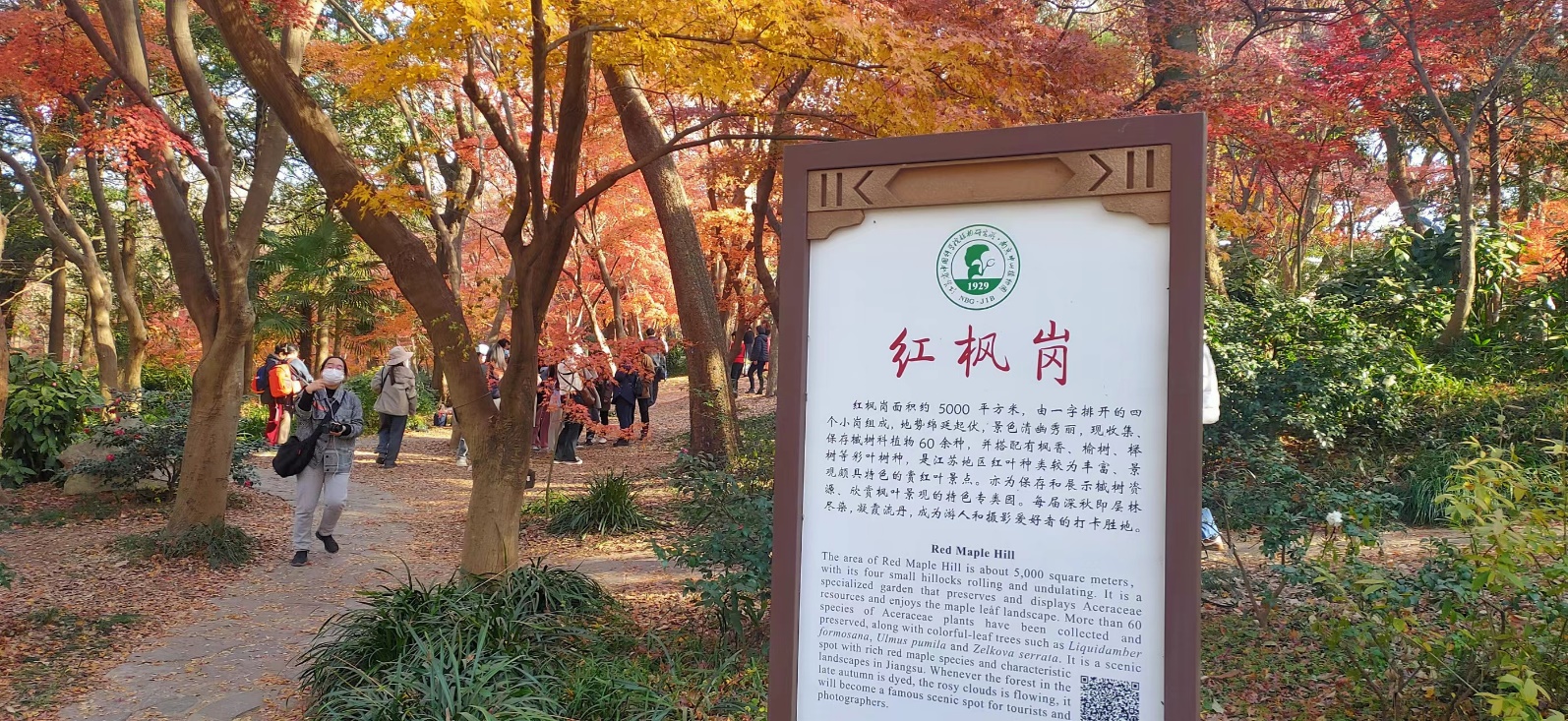参与活动的教职工在中山植物园北门口集体合影,先参观了北园的深秋红叶,而后又参观了南园的夏日风情。