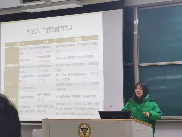 2023年12月27日晚上7点,公司在礼东102教室召开了2020级本科生毕业设计动员大会暨2020级年级大会,会议由公司本科教学经理祝雪芬老师主持,辅导员方子瑜老师、本科生教务员吴紫芯老师及公司2020级参加毕设的本科生参加了本次会议。毕业设计(论文)是实现本科专业培养目标的重要教学环节,本次动员大会旨在更好地引导员工学习“毕业设计(论文)工作条例”,明确毕业设计(论文)的目的和意义,了解毕业设计(论文)的过程、方法和规范化要求。