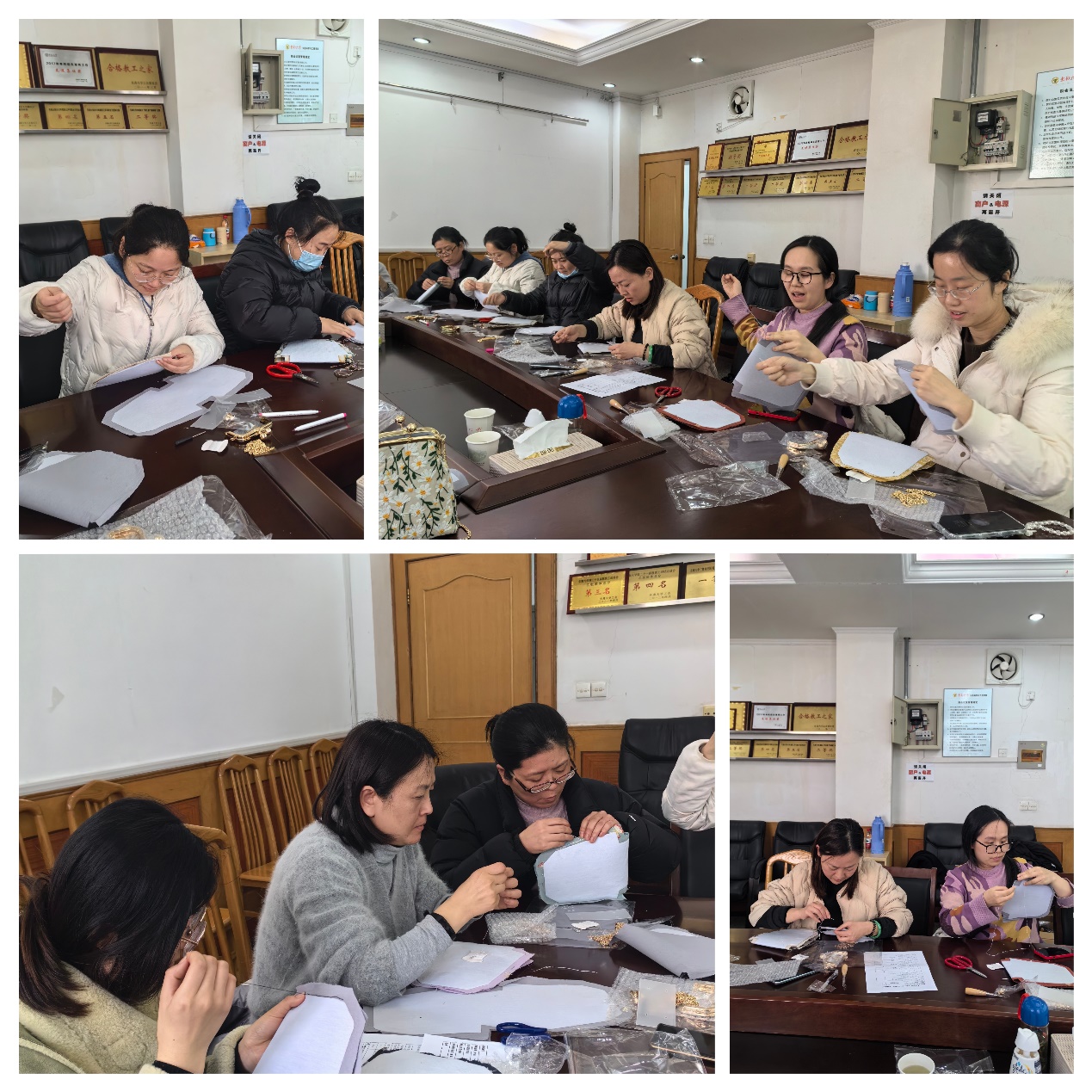 活动现场,氛围热烈而温馨。经过三个小时的努力,一个个精美的口金包在女教职工们的手中诞生。女教职工们纷纷展示自己的作品,互相欣赏。这些口金包不仅展现了女教职工们的心灵手巧和创意,更成为了她们三八节收到的最特别、最有意义的礼物。
