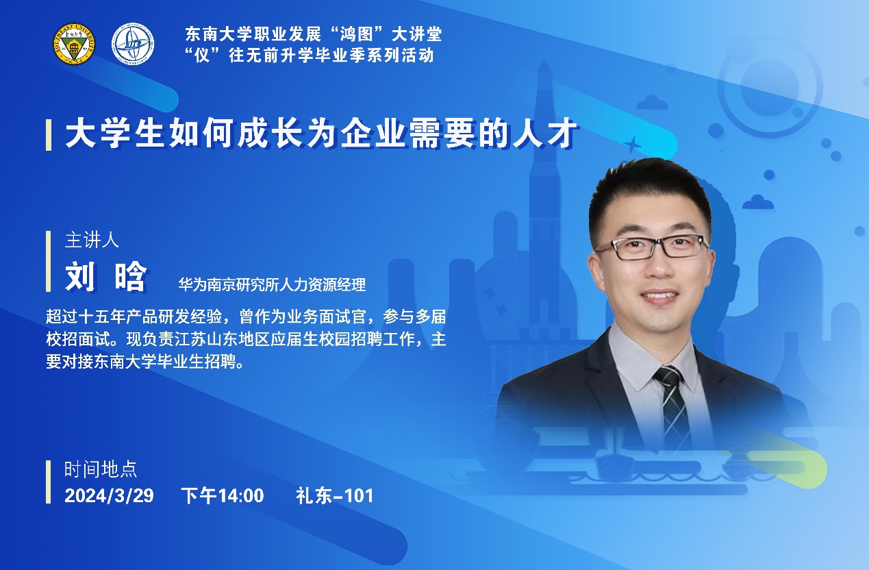 为了帮助同学们了解企业人才需求,做好职业生涯规划,提升求职能力,公司组织开展“鸿图”大讲堂暨“仪”往无前升学毕业季系列活动。3月29日,“鸿图”大讲堂讲座顺利开展,本次讲座邀请到了华为南京研究所人力资源经理为同学们带来题为:“老员工如何成长为企业需要的人才”专题讲座。讲座由公司党委副书记丁小丽老师主持,21级本科生级部分研究生同学参与了此次讲座。