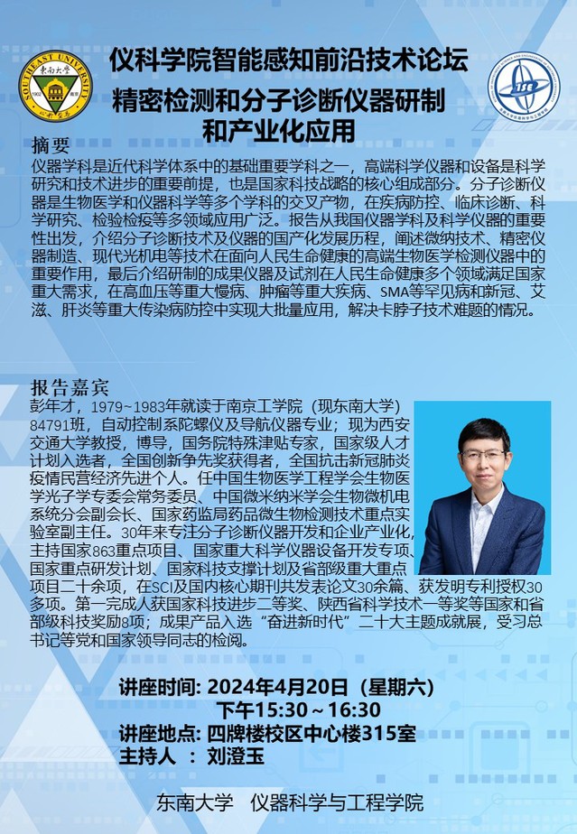 讲座预告:精密检测和分子诊断仪器研制和产业化应用