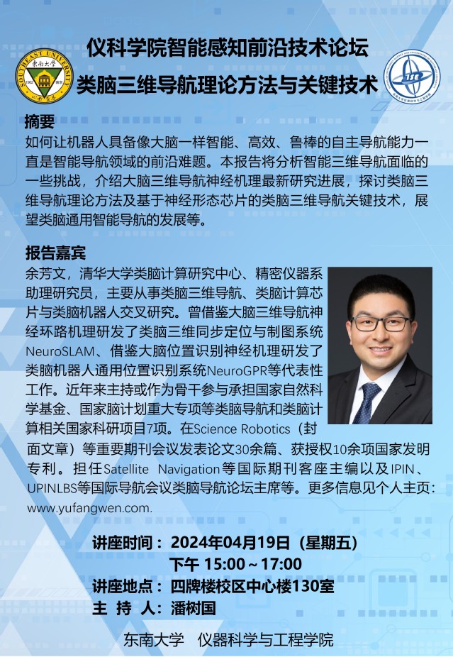 讲座预告:类脑三维导航理论方法与关键技术