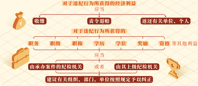 《中国共产党纪律处分条例》对于违纪行为所获利益如何处理作出了规定。主要分为两种情况——