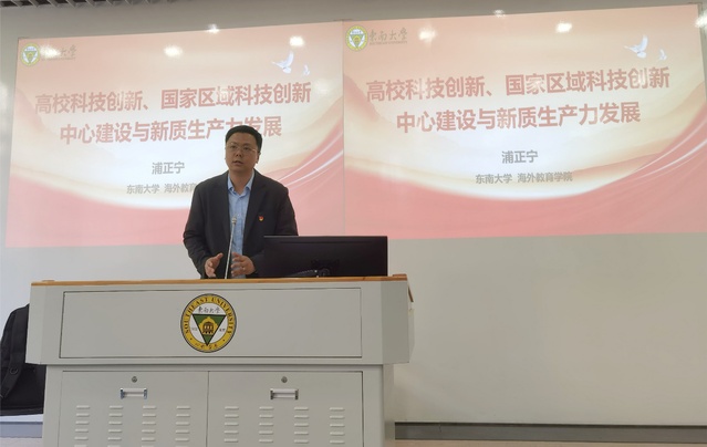 讲座中,浦教授以《高校科技创新、国家区域科技创新中心建设与新质生产力发展》为题,重点围绕新质生产力的定义与内涵、新质生产力的现实与国家区域科技创新中心的建设和高校科技创新的使命与担当等三个方面进行介绍,他指出,科技创新是新质生产力发展的核心要素,而高校作为科技第一生产力、人才第一资源、创新第一动力的重要结合点,是发展新质生产力的重要力量,是新质生产力的策源地、孵化地。最后,蒲教授通过分析高校在国家区域科技创新中心建设中的作用,点明了高校科技创新走好向“新”提“质”之路的具体方向。