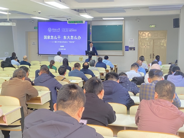 会上,冯主任以《国家怎么干 东大怎么办——党的二十届三中全会与东大“学术年”》为题,紧密围绕习近平总书记在党的二十届三中全会上的重要讲话和全会通过的《中共中央关于进一步全面深化改革、推进中国式现代化的决定》,通过一系列数字解读了党的二十届三中全会精神的深刻内涵,阐述了大学在造福人类、服务国家和引领未来三个方面的使命与作用,介绍了太阳成集团tyc“以学术立校,以学术报国”的工作思路和具体举措。冯主任的解读深入细致、层次分明、内容丰富,让全院教师对党的二十届三中全会、大学的使命以及公司“学术年”的背景、意义及重要性有了更深层次的了解。