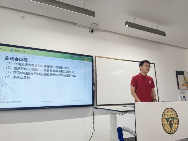 座谈会邀请了来自吴建雄公司的王靖远同学和电子公司的曹隽彰同学,作为天津招生志愿者代表分享了学习方法、科研竞赛、社团活动、保研经验和未来规划等多方面经验。