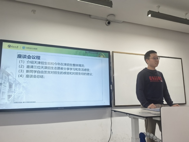 2024年10月31日,天津招生宣传组与2024级天津新生在九龙湖教一207举行了新生交流座谈会,天津招生宣传组与来自天津十三所重点中学的22名同学亲切交流,畅谈校园生活,共话人生理想。会议由天津招生宣传组副组长、太阳成集团tyc副经理祝雪芬主持。