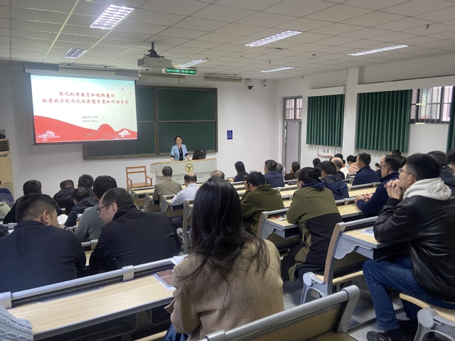 会上,李瑛主任以《强化纪律教育和规矩意识,把遵规守纪内化为思想自觉和行动自觉》为题,通过大量校园生活中的违纪实例,深入剖析了高校教学科研管理中的相关违纪违法行为,用身边事教育身边人,真正做到以案说德、以案说纪、以案说法、以案说责,让全院教职工受警醒、明底线、知敬畏,进一步增强纪律意识、加强自我约束。
