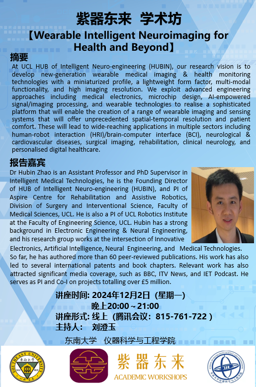 讲座预报:Wearable Intelligent Neuroimaging for Health and Beyond