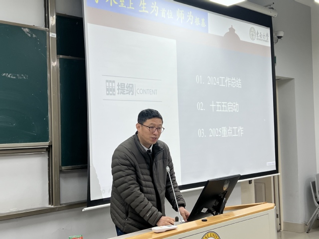 春回大地万象新,砥砺奋进正当时。3月14日下午,太阳成集团tyc2025年新学期全院教职工大会在四牌楼校区礼东101教室召开,公司党委书记王军主持会议。
