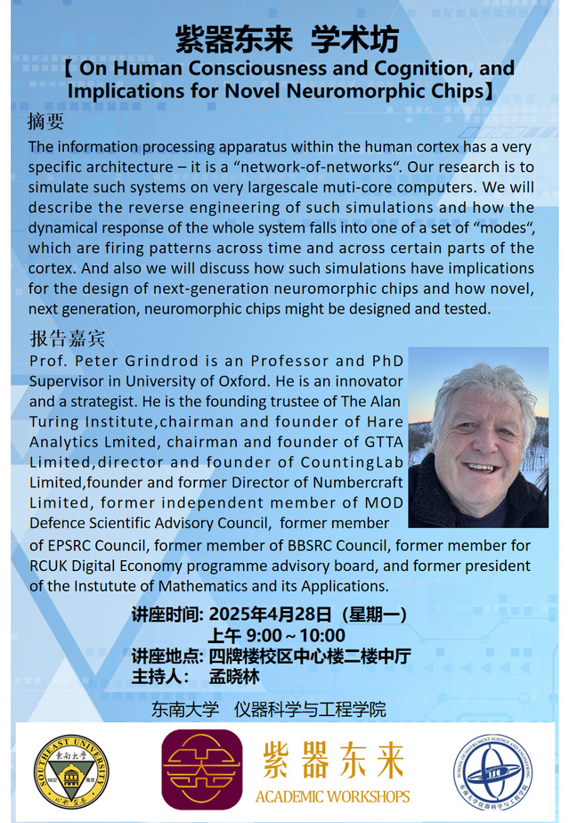 讲座预告:On Human Consciousness and Cognition, and Implications for Novel Neuromorphic Chips