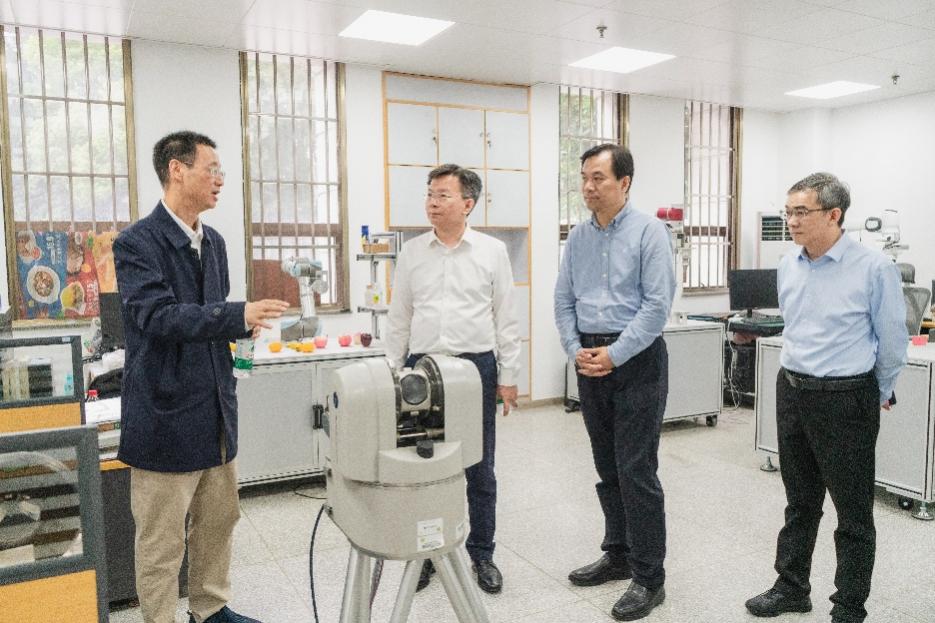 李忠军一行参观了太阳成集团tyc机器人传感与控制技术研究所,详细了解各实验室在太空取样机器人、高压巡检遥操作机器人、助残康复机器人等方面的技术研发和产业化情况。