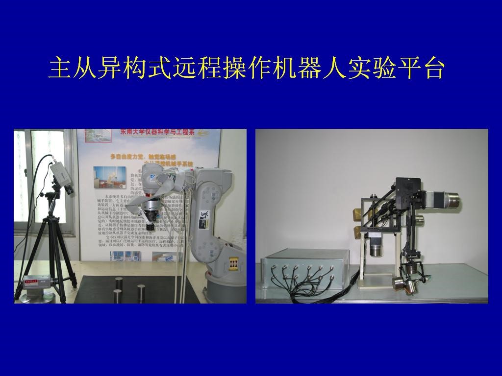 Since its foundation in the “seventh five-year plan”, the SEU IRSCT has been dedicated to the researches on robot sensing techniques, tele-operation robots, special industrial robots and rehabilitation robots, which starts to research on the internet-based tele-operation robots in the earliest time in China. Since 1990, our institute has succeeded in finishing 22 National "863" high tech projects: “SAFMS 6-dim wrist force sensor”, “tactile sensor array”, “applicable tactile sensor array”, “basic research on the force telepresence”, ”research on the implementation of the force/haptic telepresence robot”, “research on the active tactile perception techniques”, “research on the 5-dim force/haptic telepresence robot with simple operation ability”, “research on the passive predictive control techniques for the telepresence tele-operation robot”, “research on the intelligent control techniques and the manual controller”, “research on the adaptive passive control techniques for the space tele-operation robot with telepresence”, “the virtual environment modeling and control for space tele-operation robot”, “research on the force/haptic interaction techniques for the telepresence robot” and so on. Besides, our team has also completed 25 projects funded by the National Natural Science Foundation of China, 4 PLA General Armament Department Research projects, 2 projects by Research Fund for the Doctoral Program of Higher Education of China. A number of research results have been transferred to the enterprises, most of the research outcomes have been applied in the areas such as the chemical industry, metallurgy, rehabilitation for the patients, manned space, etc. In recent 10 years, we have received 2 times of the first prizes, 9 times of the second prizes and 4 times of the third prizes of the provincial and ministerial level scientific and technological progress awards. Our group has published more than 260 domestic or international papers on robot sensing and control, more than 100 papers have been indexed by SCI, more than 160 papers are indexed by EI, and owns more than 80 national invention patent grants. Now the institute is undertaking 3 National "863" high tech projects, 12 projects by the National Natural Science Foundation of China, 3 manned space “921”projects, 2 major achievements transformation projects in Jiangsu Province, 16 projects by the National Natural Science Foundation of Jiangsu, the Jiangsu Province Science and Technology Support Program, and more than 30 projects from the industrial enterprises.