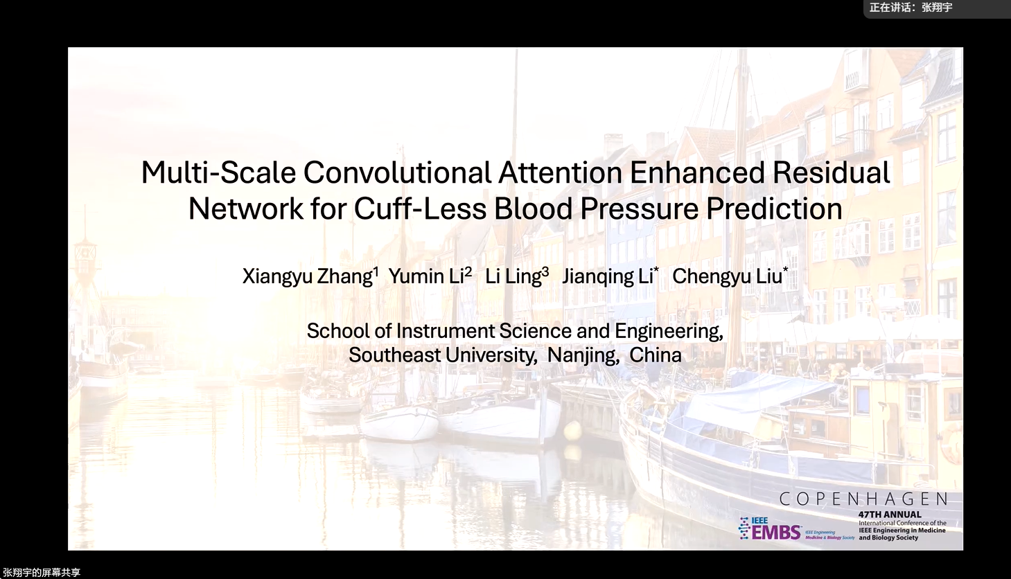 From July 14 to 17, 2025, a six-member graduate team from the Institute of Advanced Medical Engineering and Equipment, School of Instrument Science and Engineering, Southeast University, will attend the 47th IEEE International Conference on Engineering in Medicine and Biology (EMBC 2025) at the Bella Center, Copenhagen. Founded in 1957, EMBC is one of the most influential conferences in biomedical engineering. The 2025 edition, co-hosted by the Technical University of Denmark and the University of Copenhagen, focuses on “Engineering Medicine, Innovating Healthcare” and has attracted more than 2,300 participants worldwide. Ahead of the trip, the SEU team held an online rehearsal within the school to refine their presentations and exchange feedback with faculty and peers.